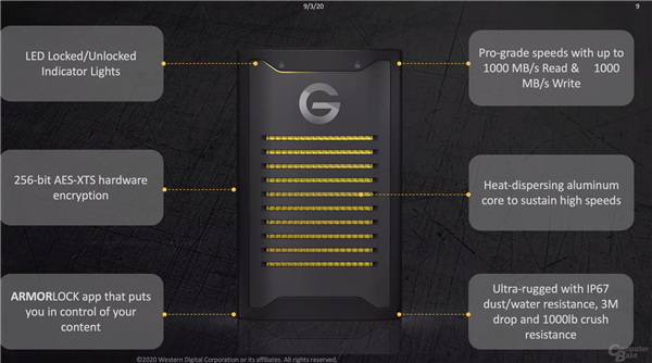想要绝对安全又坚固耐用的SSD硬盘的商务精英注意了,西数推出了ArmorLock移动SSD,它不再使用传统加密手段,改用智能手机扫码加密、解密,可以确保数据万无一失了。移动SSD硬盘不新鲜了,很多品牌还有自己的加密软件以便用户加密数据,不过西数通过子品牌G-Technology推出的ArmorLock NVMe SSD就不一样了。