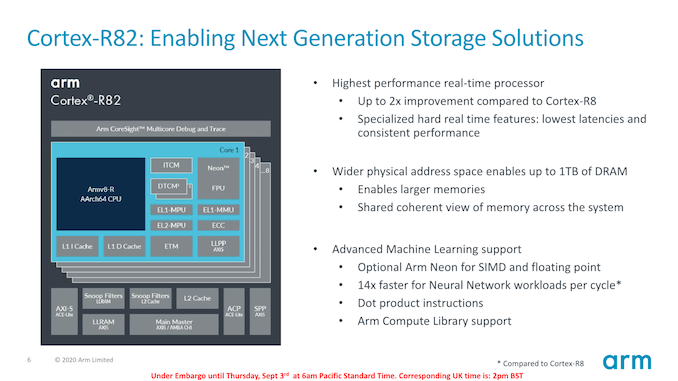 Arm表示,目前85%的存储解决方案都使用Cortex-R处理器,因此新的R82很可能代表着性能的大跃进,并为厂商在未来设计中设计新的差异化功能提供了新的可能性。