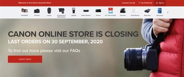 电商化转型,似乎是传统行业尤其是电子设备行业在过去数年一直积极推动的事情。今年遭遇疫情后,网购对线下销售的替代性似乎进一步增强。然而,佳能却反其道而行之,决定关闭在线商城。据外媒报道,佳能澳大利亚在官网刊出告示,定于9月30日前关闭官网的在线商城。官方透露,做出该决定是想拉线下零售商们一把。