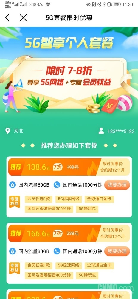 也正是趁着这股政策东风,我当时更换了中国移动第二档5G套餐,原资费是每月198元,优惠后价格在138元左右,冲的就是60G的全国流量,因为通话平时不怎么用,所以有没有无所谓。