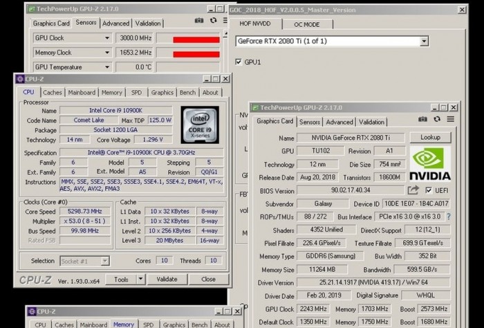 尽管性能无比强大的RTX 3090已经发布,可DIY好手们仍在孜孜以求对手头已有产品极限实力的挖掘。日前,TecLab的Ronaldo“rbuass” 和Jacson Schenckel打破了RTX 2080 Ti的频率世界纪录,摸到了3000MHz,超频所用显卡为影驰GeForce RTX 2080 Ti HOF OCLab版。