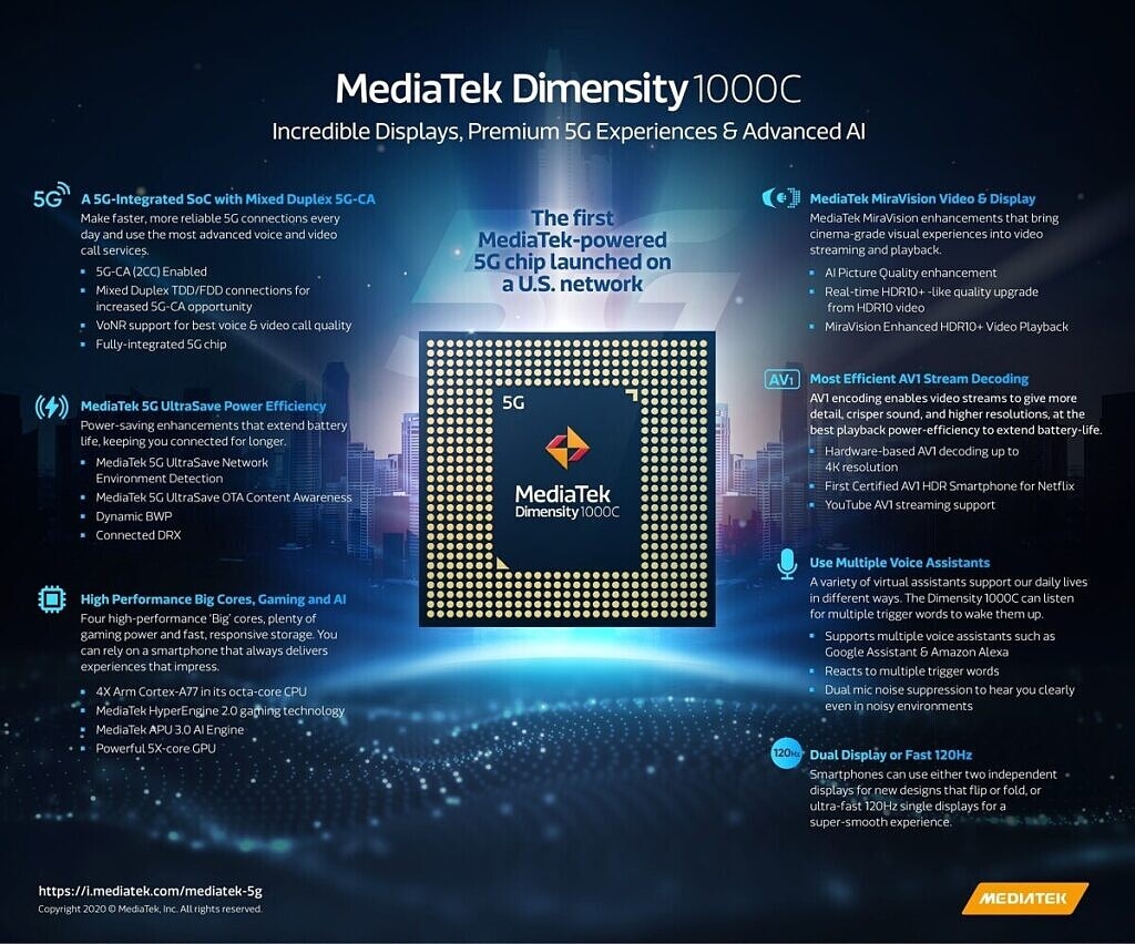 不经意间,联发科竟然又发了一款天玑1000系列处理器——这次是天玑1000C,这款5G芯片是专攻美国市场的,CPU、GPU到内存、摄像头都砍了不少,5G网速也从4.7Gbps降至2.3Gbps。