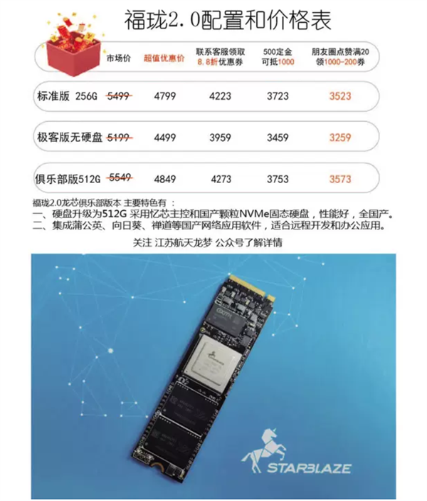 价格方面,福珑2.0微型电脑极客版5199元、标准版5499元、俱乐部版5549元,现有超值优惠价、8.8折优惠券、500元定金抵100元、朋友圈点赞领200元券等多重福利,最终到手价分别为3259元、3523元、3579元!