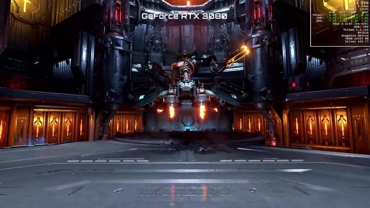 下个月《毁灭战士:永恒》的新资料片“古神”终于让我们有理由重返这款游戏,而现在有了Nvidia的新卡,那么理由就更“足”了。正如本周初透露的,英伟达展示了他们的下一代显卡,包括旗舰产品GeForce RTX3080。官方展示了RTX 3080与RTX 2080 Ti的《毁灭战士:永恒》对比预告片(源地址)。