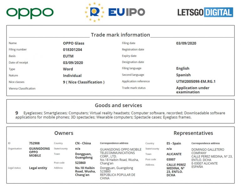 这个申请的时机意义不言自明,此类商标往往在产品正式揭幕前不久注册。因此,我们很有可能在本月晚些时候听到更多关于OPPO的AR设备的消息。同样引人注目的是,该申请是在欧洲提出的,这可能说明,AR眼镜也会首先在欧洲市场亮相。