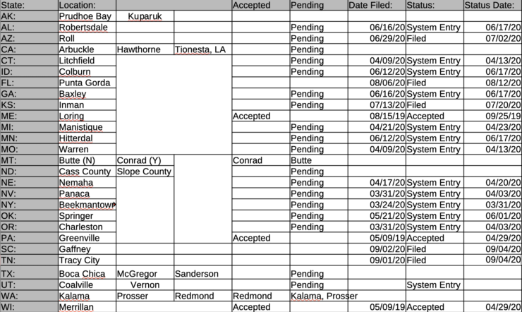 在这一战线上,该卫星运营商一直忙于向FCC提交申请,允许其从这些地球站进行广播,不仅用于测试互联网网络,而且用于最终部署。到7月初,向FCC国际局提交的文件显示,SpaceX已经在美国大约24个州申请了地球站的批准。