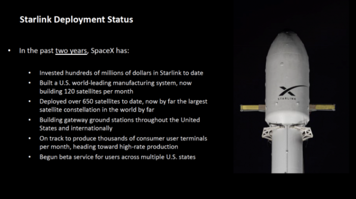 据外媒报道,在向美国联邦通信委员会(FCC)提交的一份新文件中,宇航发射服务提供商和设备制造商SpaceX透露了有关其星链(Starlink)互联网卫星星座的新细节。这些细节是由公司官员周三向FCC所作的介绍提供的,它们建立在该公司在上个月初与该机构分享的信息基础上,以说服FCC不要剥夺其对星链卫星12GHz频谱的使用权。