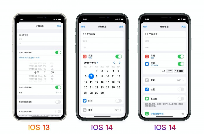 此外,在提醒事项的详细信息页面中,iOS 14 的新版还加入了更多可视化图标,更易于分辨和选取。