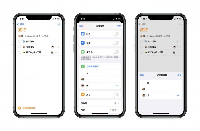 新版提醒事项的改进还包括共享协作,作为一款“todo”应用,协作功能是一个不可或缺的特性。虽然苹果在去年的 iOS 13 中加入了分享协作,允许创建者将任务列表共享给其他用户,但协作的功能还较为单一,首当其冲的是不支持任务分配,即加入到共享列表的用户都会接受到该列列表内的所有任务,不利于管理和分配。