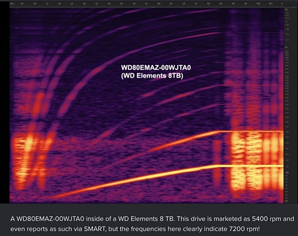 对HDD硬盘来说,转速是影响性能的关键,一个标称5400RPM转速的硬盘,结果是7200RPM转速的,你会高兴不?这几天Reddit上有个帖子很热闹,有网友发现自己买的西数8TB硬盘虽然标称是5400RPM转速,但实际上转速是7200RPM的。