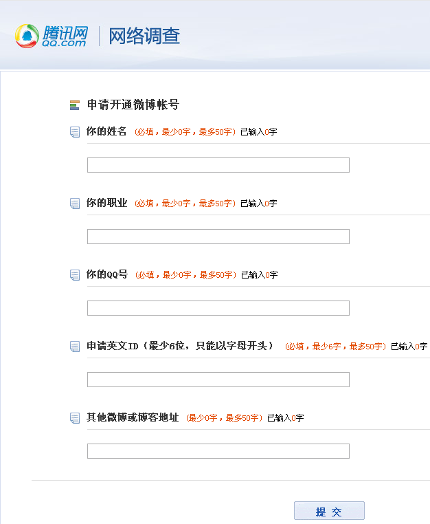 填写这样的一份调查问卷,就可以无需邀请码开通腾讯微博了