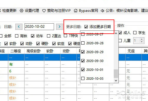 登录过后,就是满满理工风的主界面了。其中最上方是车次查询区,我们可以在这里选择出发地、目的地、购票日期、火车类别(G/D/Z/T/K)、席位等级(特等、一等、二等、软卧、硬卧、软座、硬座)等信息,来查找适合的车次。这里有一项比12306更人性化的地方,那就是你可以勾选“添加更多日期”,来一次性筛选出更多的日期,以便提高车次选择空间。