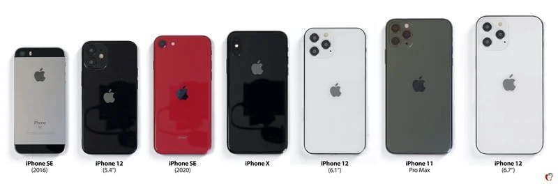 由于疫情的影响,苹果在2020年发布的产品并不多,这次活动可能会集中在iPhone主题(可能还会有一些配件),今年我们预计会有三款尺寸的四款iPhone,将有5.4和6.1英寸两种尺寸选择,其中的5.4英寸机型将是苹果近年来发布的最小的iPhone。