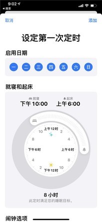 你可以在健康APP里编辑你的入睡眠时长,然后滑动曲条就可以帮你设置入睡时间和起床时间了,在到达入睡时间后会自动帮你打开勿扰模式,你也可以设置指定联系人跳过勿扰。