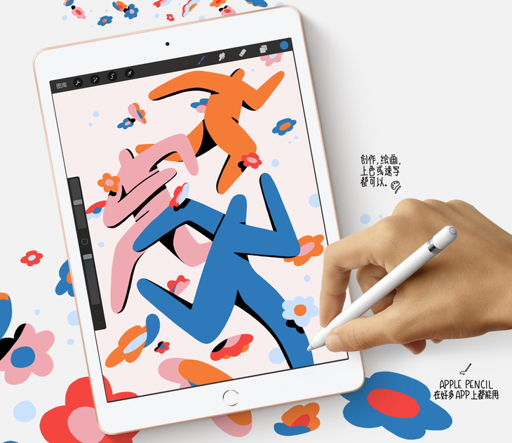 首先是屏幕方面,虽然二者均为“视网膜屏”,支持一代Apple Pencil,但iPad 8依旧采用了非全贴合工艺,因此机身要稍厚些,观感不如全贴合的Air3那么通透,而且iPad 8的屏幕没有防眩光涂层,抗反光能力较弱,也不支持P3色域和原彩显示。