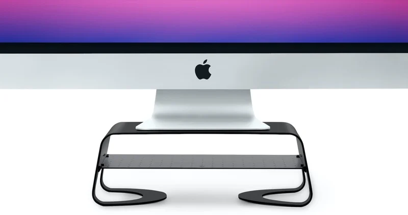 今天在其产品阵容中增加了一款新的iMac支架,这款名为 "Curve Riser"的支架与该公司现有的Curve MacBook支架的美感相匹配。Curve Riser由金属制成,包括一个固定高度的结构和一个用于存放配件的架子。该支架可兼容iMac、iMac Pro或外部显示器。