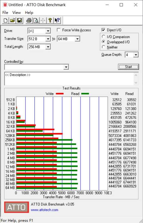 ATTO Disk Benchmark是一款常用的测试软件,该软件使用了不同大小的数据测试包,数据包按0.5K, 1.0K, 2.0K直到8192.0KB进行分别读写测试,测试完成后数据用柱状图的形式表达出来,能够很好的说明文件大小比例不同对磁盘速度的影响。