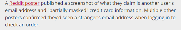 近日,有用户反映英伟达网上商店存在漏洞,用户会在页面上随机看到其他顾客的邮箱地址和个人信息。一位Reddit用户发布了一张截图并声称这是其他用户的地址以及“部分遮盖”的信用卡信息。多位用户跟帖表示他们在登陆检查订单时也发现了陌生人的邮箱地址。
