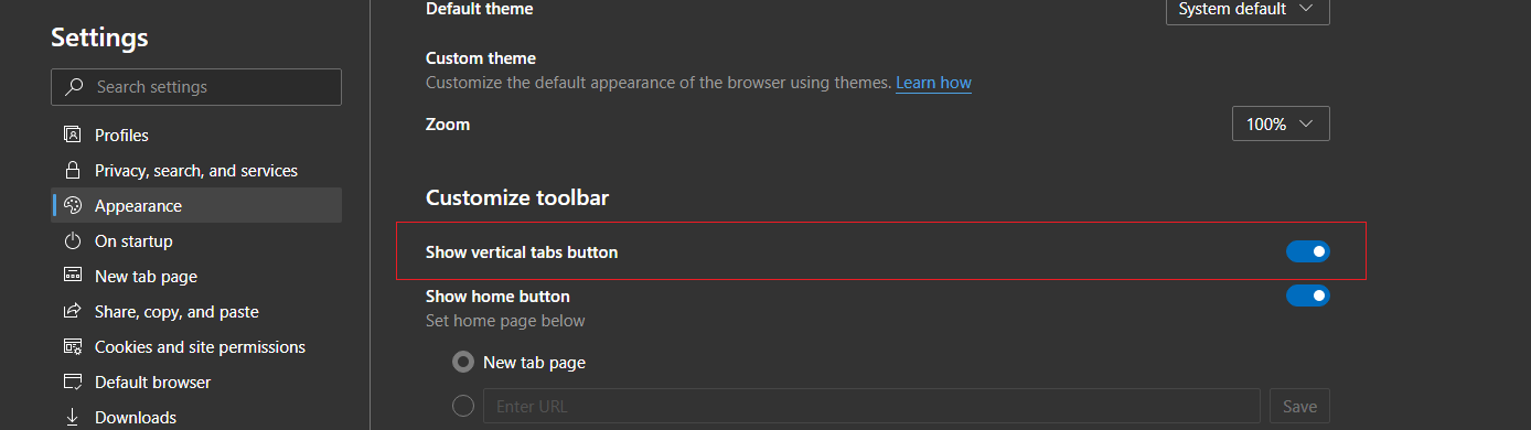 如需对 "垂直标签"按钮进行更改,可以进入设置->外观,然后启用/禁用 "显示垂直标签"的切换开关、