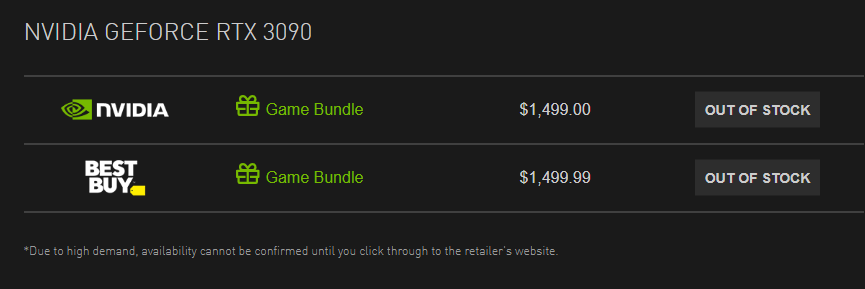 不过目前,无论NVIDIA官网商店还是百思买,RTX 3080/3090 FE公版卡都是根本没货。