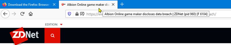 启用后,用户可以通过将鼠标悬停在Firefox选项卡上来测试站点隔离是否处于活动状态。如果启用,工具提示将显示[F]指示Fission处于活动状态,以及PID –每个Firefox选项卡的OS进程ID。