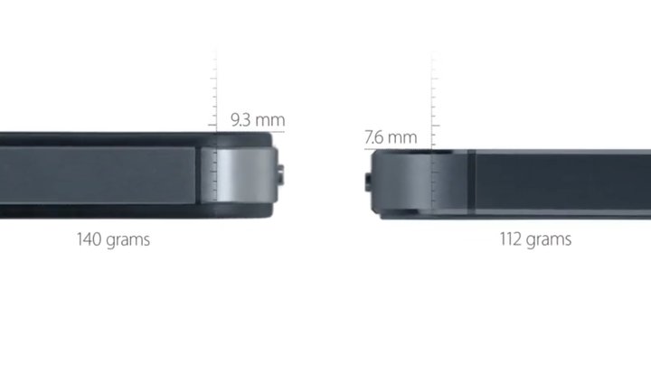 往后的 iPhone 5 时代,整体仍然延续了 iPhone 4 的方正风格,但由于它的外壳是由一整块铝合金削切而成,机身厚度与重量得到明显下降。