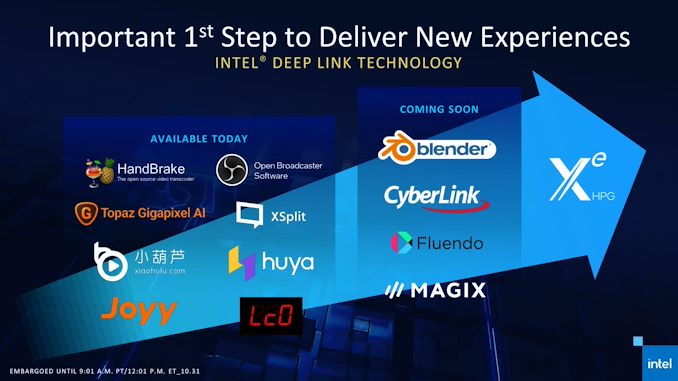 它的目的是让合作伙伴不必再多花钱购买GeForce MX系列显卡,以满足能够进行全高清分辨率下的休闲游戏和从事入门级创作的笔记本电脑。英特尔还介绍了一些新的技术,例如深度链接(Deep Link)允许系统结合集成和独立的Xe GPU的处理能力,用于AI推理和渲染(Additive AI)和视频编码(Hyper Encode)等创意任务。