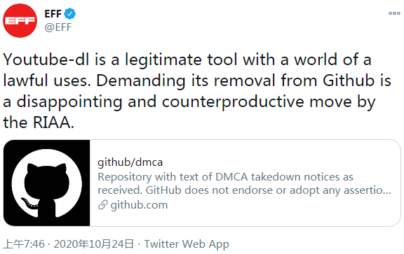 正如之前报道的那样,Github对YouTube-DL开发者的困境表现出了不同寻常的同情。大多数平台都很乐意简单地遵循规则,删除内容以回应DMCA的投诉并站在一边宣称“与我们无关”。另一方面,Github积极参与进来,试图恢复该项目。