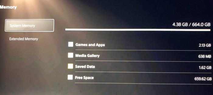这位用户还放出截图,显示PS5的SSD可用空间为664GB。他表示在PS5上《侠盗猎车5》单人游戏的加载时间为5-10秒,而多人游戏加载时间为30秒。