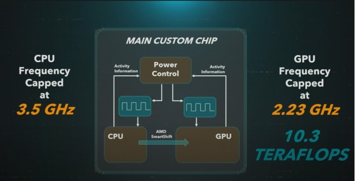 这一世代主机 PS5 和 Xbox Series X 都选用了 AMD 定制的 CPU 和 GPU,但两者的具体应用方案略有不同。例如在 GPU 部分,PS5 的 GPU 运算单元要比 Xbox Series X 少(36 颗 VS 52 颗),因此需要提高极限频率来保障性能(2.23GHz VS 1.825GHz),并通过动态调节来满足自己不同游戏配置的需要,这也被认为是 PS5 需要有更强散热能力的原因之一。