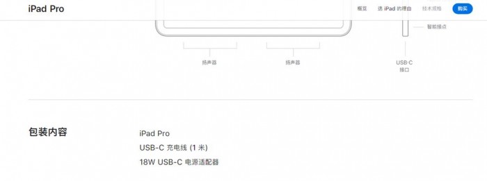 当然,无论是苹果北美还是中国官网,iPad Pro页面仍显示标配的是18瓦充电头,看来在老充电器的库存未完全消化前,到底能不能买到还得看运气。
