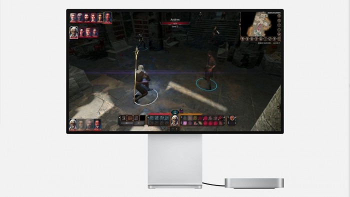 有趣的是,演示用的 Mac mini,竟然搭配了一台 Pro Display XDR 显示器。如果将Mac mini跟价格范围内最畅销的PC台式机相比,它的尺寸只有其5倍性能机器的1/10。