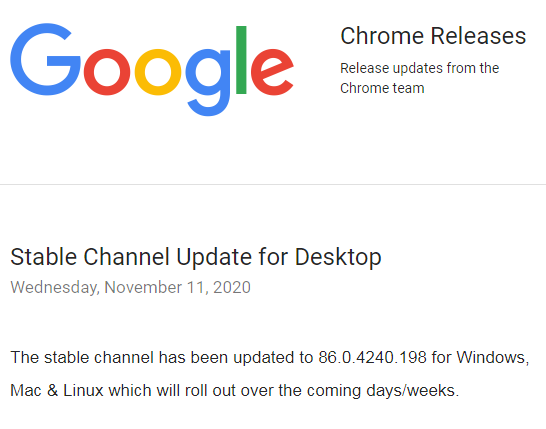 目前尚不清楚上述漏洞的严重程度,但谷歌还是建议大家尽快更新至 86.0.4240.198 。不过鉴于大多数零日漏洞攻击仅会瞄向少数极具针对性的目标,普通用户其实没必要太过恐慌。