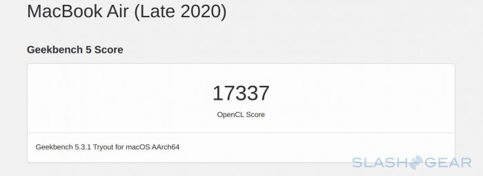 跑分虽然不是一款设备的全部,但从某个角度能够直观的展现设备的性能。在本文发布之前,在社交媒体、网站报道中已经有很多关于 M1 芯片的跑分信息,而下面这张是 SlashGear 贡献的 GeekBench 跑分图。