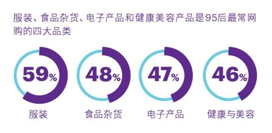 ▲95后最常网购的四大品类,电子产品占据较大比重,且平均客单价较高(数据来源:埃森哲全球95后消费者调研中国洞察)