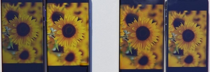 户外阳光下,从左到右:华为P40 Pro、OnePlus 8 Pro、三星Galaxy Note20 Ultra 5G、苹果iPhone 12 Pro