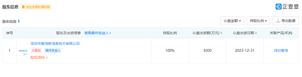 深圳市智信新信息技术有限公司,由深圳市智慧城市科技发展集团与30余家荣耀代理商、经销商共同投资设立,包括天音通信有限公司、苏宁易购集团股份有限公司、北京松联科技有限公司、深圳市顺电实业有限公司、山东怡华通信科技有限公司、深圳冀顺通投资有限公司、河南象之音健康科技有限公司、福建瑞联优信科技有限公司、内蒙古英孚特通讯技术有限公司、哈尔滨金潭科技发展有限公司等。