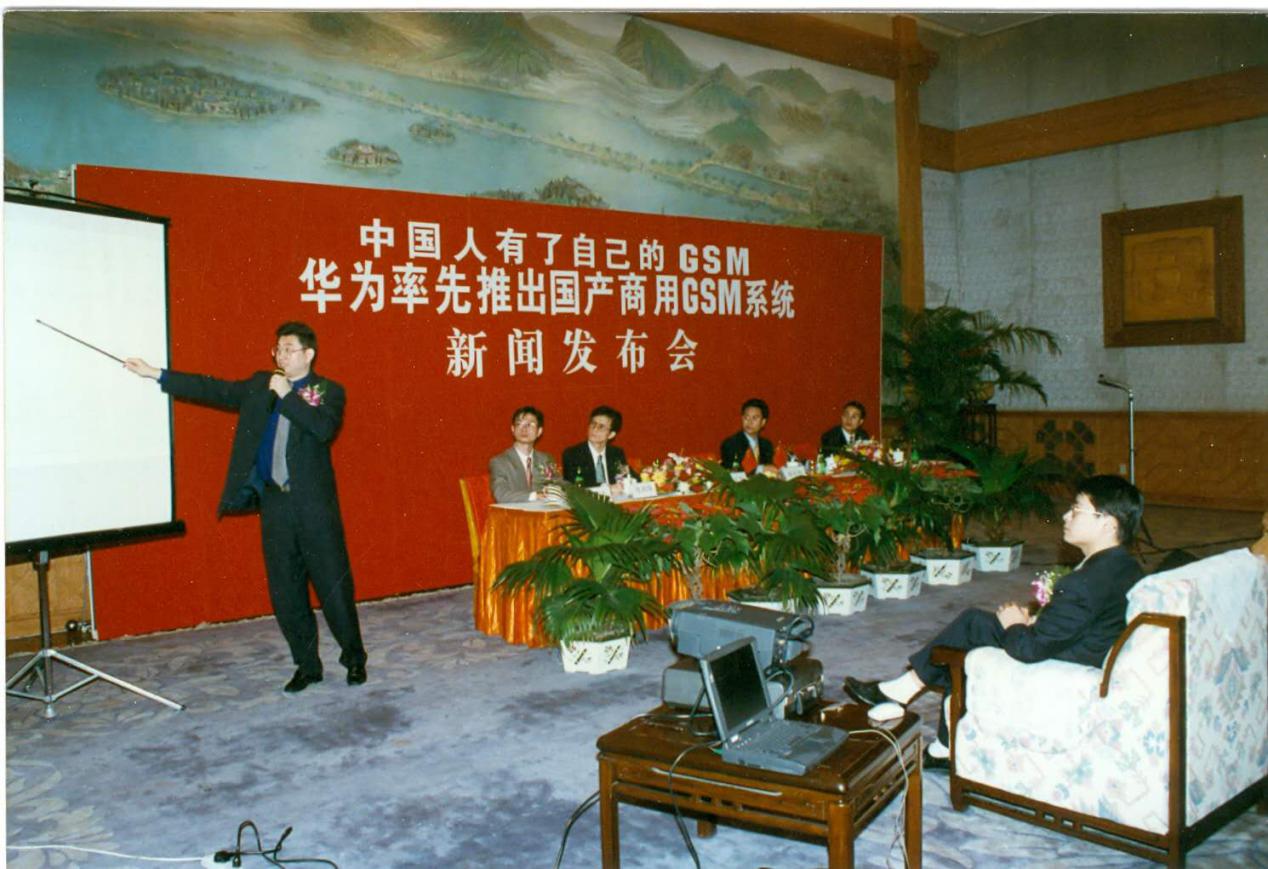 全网首发一张珍贵历史照片,1997年10月,华为首任无线业务总经理徐文伟于人民大会堂发布了中国首套GSM系统。