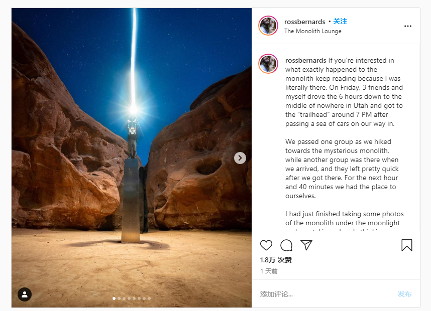 据外媒CNET报道,上周在犹他州的沙漠中发现了的神秘“巨石”引起了国外众多网友的关注。然而这个奇怪的金属物体却突然失踪了。 犹他州土地管理局在Facebook上发布声明称,该机构“没有拆除被认为是私有财产的结构”。