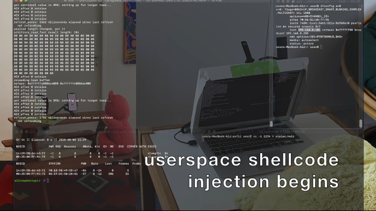自动攻击不需要互联网连接,它确实需要iPhone连接到某种无线系统 - 在这种情况下,它连接到Wi-Fi信号。通常情况下,Wi-Fi网络是有密码保护的,所以设备和攻击者之间会有额外的安全层。Beer建议,演示绕过了他通常需要突破第一条无线连接线的那一点,但这样做只需要时间,而这个演示都是关于初级黑客的。