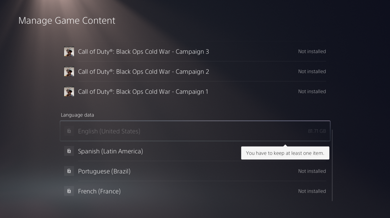 幸运的是,《使命召唤17:黑色行动 冷战》可以让您卸载不再想要玩的游戏模式来节省一部分的空间。