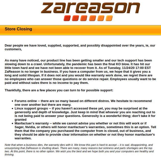 据外媒报道,ZaReason是一家总部位于加州的笔记本电脑/台式机/服务器供应商,在长期经营并成为早期精品Linux PC供应商之后成为了COVID-19大流行的最新受害者。ZaReason从2008年开始提供跨各种笔记本电脑、台式机和服务器的Linux。