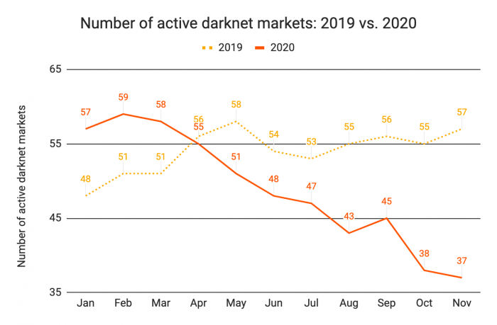 凭借这些最新发展,2020年的整个暗网市场收入已超过2019年,仅剩一个月了。但是尽管总收入可能不会改变,但其他数字表明,暗网市场可能会面临艰难时期。