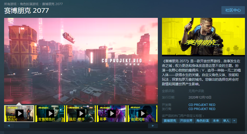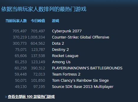 万众期待的《赛博朋克2077》,目前PC版已经解禁,游戏售价298元。玩家终于可以进入赛博朋克世界,尽情领略夜之城的魅力。根据Steam“当前玩家人数排列的最热门游戏”榜,《赛博朋克2077》现在有超过70万名玩家,位居榜单第一名,其热度还在不断飙升中。