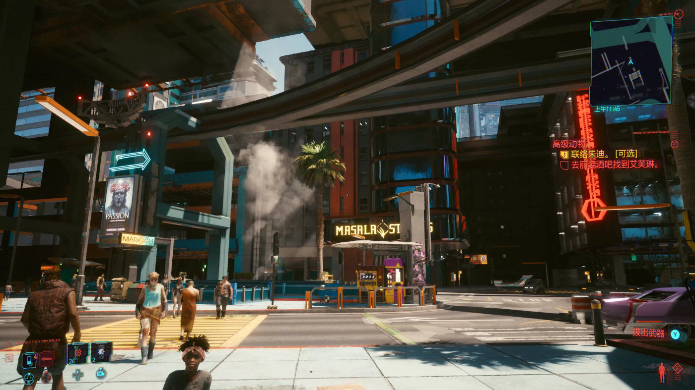 尽管《赛博朋克2077》开放世界的内容广度足以匹敌其他同行作品,但是缺乏亮点的套路化填充还是让游戏显得格局略小。毕竟大部分内容落实到具体玩法上,无非是对本作战斗系统的反复运用。不过本作街头巷尾的人文互动相比《巫师3》提升不少,脚本化演出背后,NPC们身上也有了承载故事的能力。