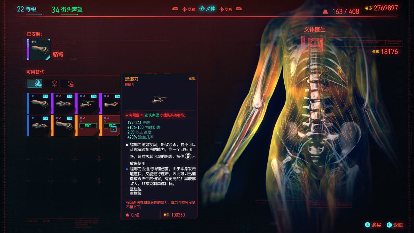 除了表层的养成元素,游戏中玩家的人造义体同样有着一套可以高度自定义的设计。玩家可以在“义体改造医生”处自定义自己的眼睛、躯干、手脚等等部位的部件,并为其设置各种等级、性能的义体插件,从而引发更多义体的能力。