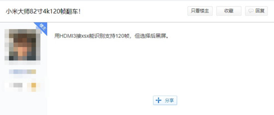 据网友爆料,采用联发科芯片的小米电视“大师”65"OLED出现了严重的翻车现象。原本可以支持4K 120Hz以及GSYNC技术的小米电视“大师”65"OLED,在进行一次系统升级后就不支持4K 120Hz技术,并且还出现了连接电脑黑屏的现象,可谓是严重翻车。不过翻车的锅要由联发科来背,不止小米,其他采用联发科芯片的游戏电视也纷纷翻车。连索尼也不例外,只不过索尼依靠自身的技术实力翻车不算特别严重,X9000H仅是在开启4K 120Hz时会出现字体模糊的情况,并不是不能开启。目前就只有采用自家芯片的LG E9和C9系列电视没有出现翻车的现象。