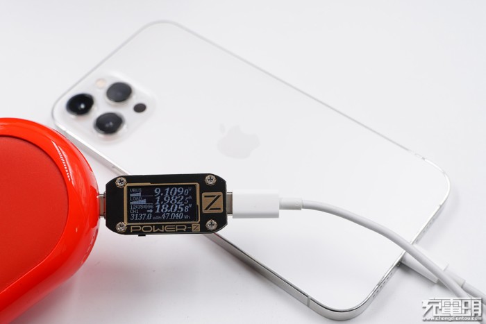 使用CIKE红玩CIC01-001 18W PD充电宝为iPhone 12 Pro Max充电,电压9.10V,电流1.98A,功率18.05W。