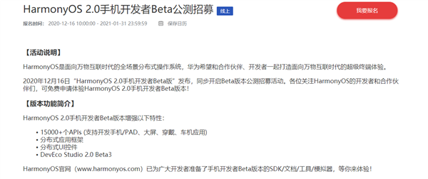 目前,华为官方已经开启Beta版本公测招募活动。开发者和合作伙伴们,可免费申请体验。