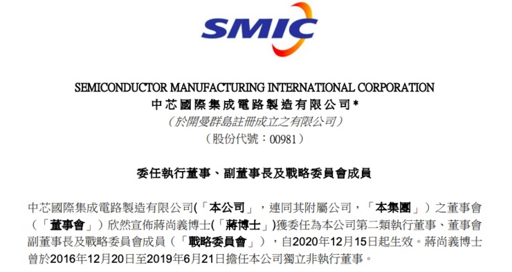 一场重大人事变动,正在中芯国际展开。12 月 15 日晚间,中芯国际发布公告称,经公司董事会任命,蒋尚义将担任公司执行董事、董事会副董事长以及战略委员会成员,该任命已经在 12 月 15 日当日其生效。